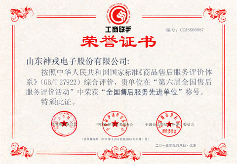 全國售后服務先進單位