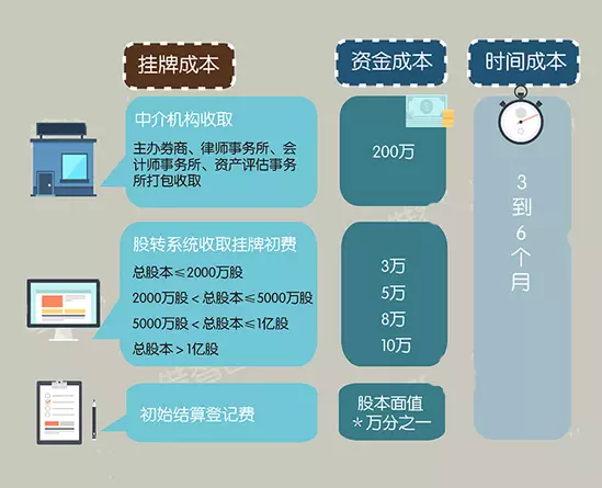 對于企業(yè)來說,一旦申請掛牌獲得備案函,就大大增加了獲得銀行貸款的概率,即股份可用來質(zhì)押貸款。此外,也會有中介機(jī)構(gòu)接洽希望參與下一輪的定向增發(fā)。掛牌新三板能為企業(yè)發(fā)展帶來名利雙收的效應(yīng),怪不得掛牌數(shù)量節(jié)節(jié)攀升。那企業(yè)家們不禁要問,掛牌要花多少錢?